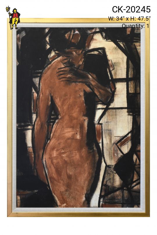 Expressionist mid 20th Century painting of a figure standing in front of a window