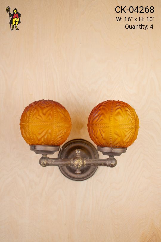 Two Light Wall Sconce w/Amber Glass Globes